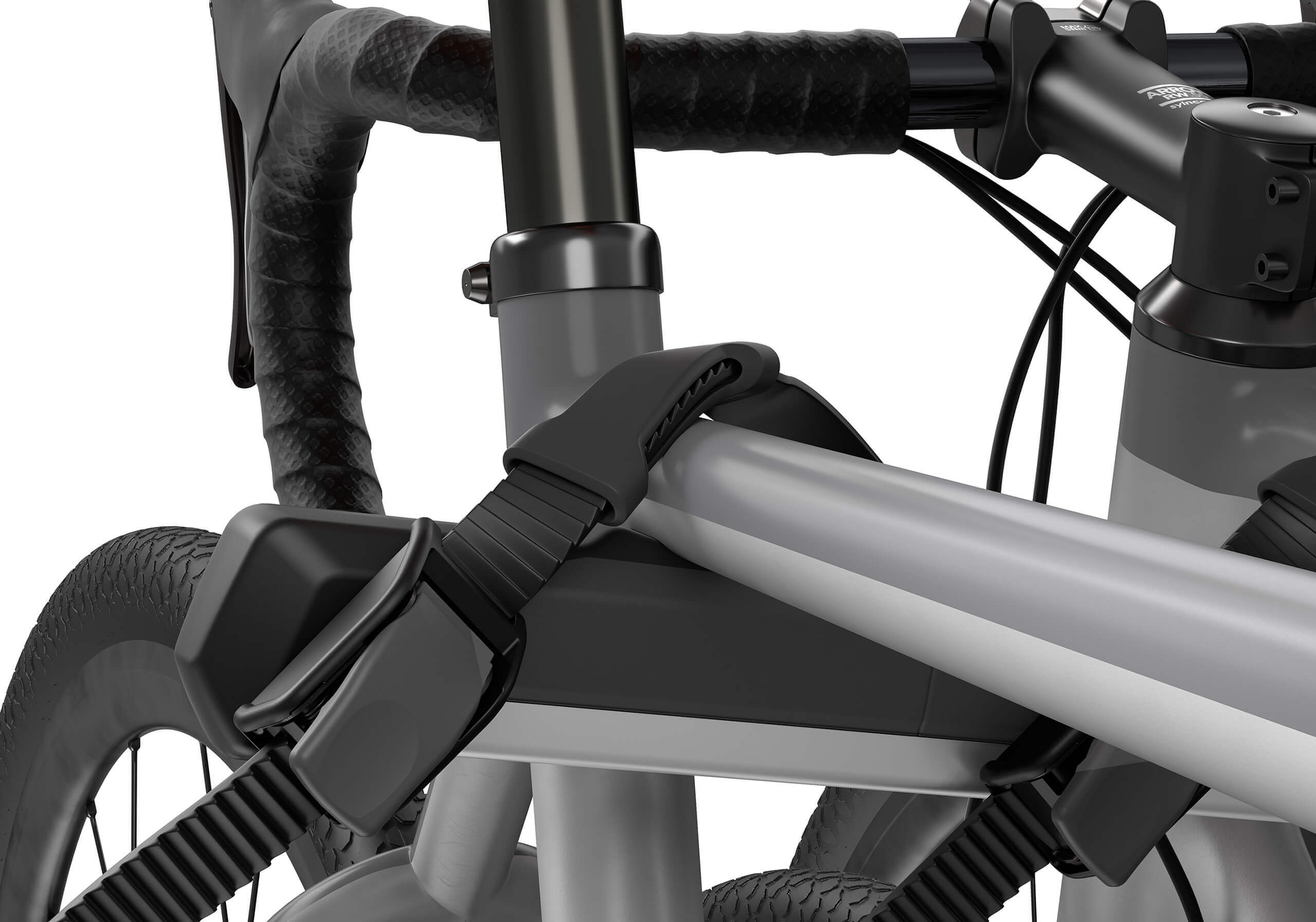 • Pump-buckle straps with rubber frame protectors hold bikes securely