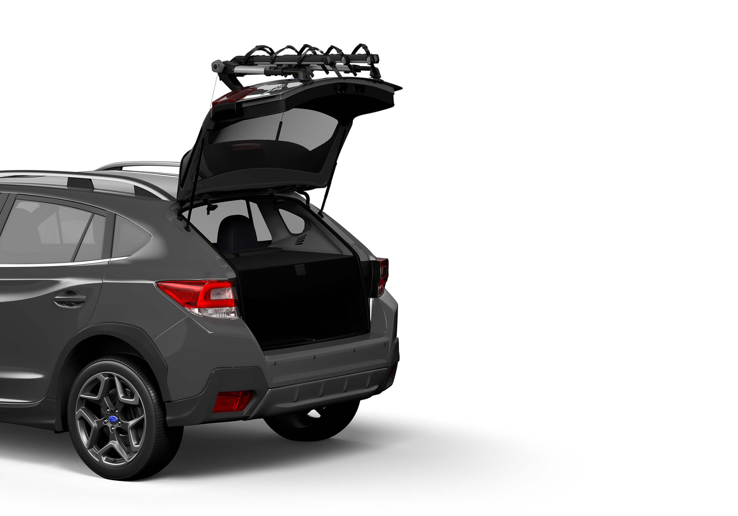 Thule’s three bike OutWay Hanging attaches securely to the back of your car using rubber coated hooks with steel cables. 'AcuTight' locking knobs are used to ensure the rack is fitted securely to the car.