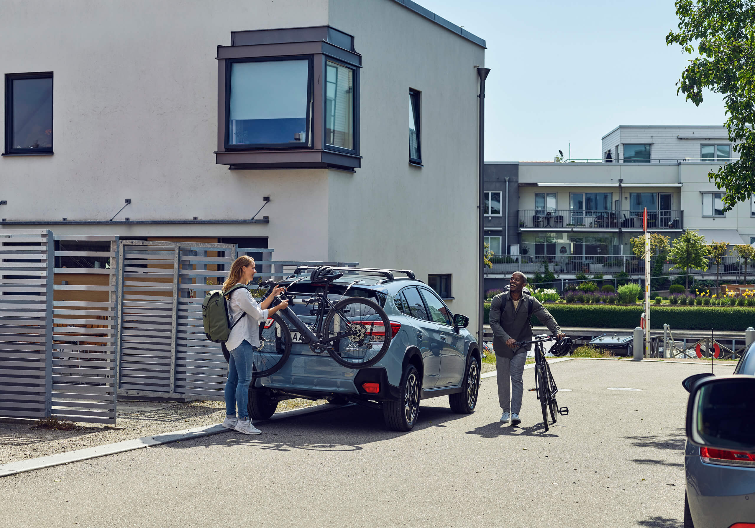 The OutWay Hanging attaches to the back of the car using dual-hooks with steel cables. All mounting points are rubber coated to prevent marks or scratches to the paintwork. These straps are secured using Thule's 'AcuTight' torque limiter knobs, these knobs click to let you know when you have fitted the rack tightly enough. Mounting the bikes is easy. The arms are adjustable to accommodate a range of different frame sizes. Bikes without a traditional cross bar may require an 'artificial cross-bar' - available separately. Other features include: