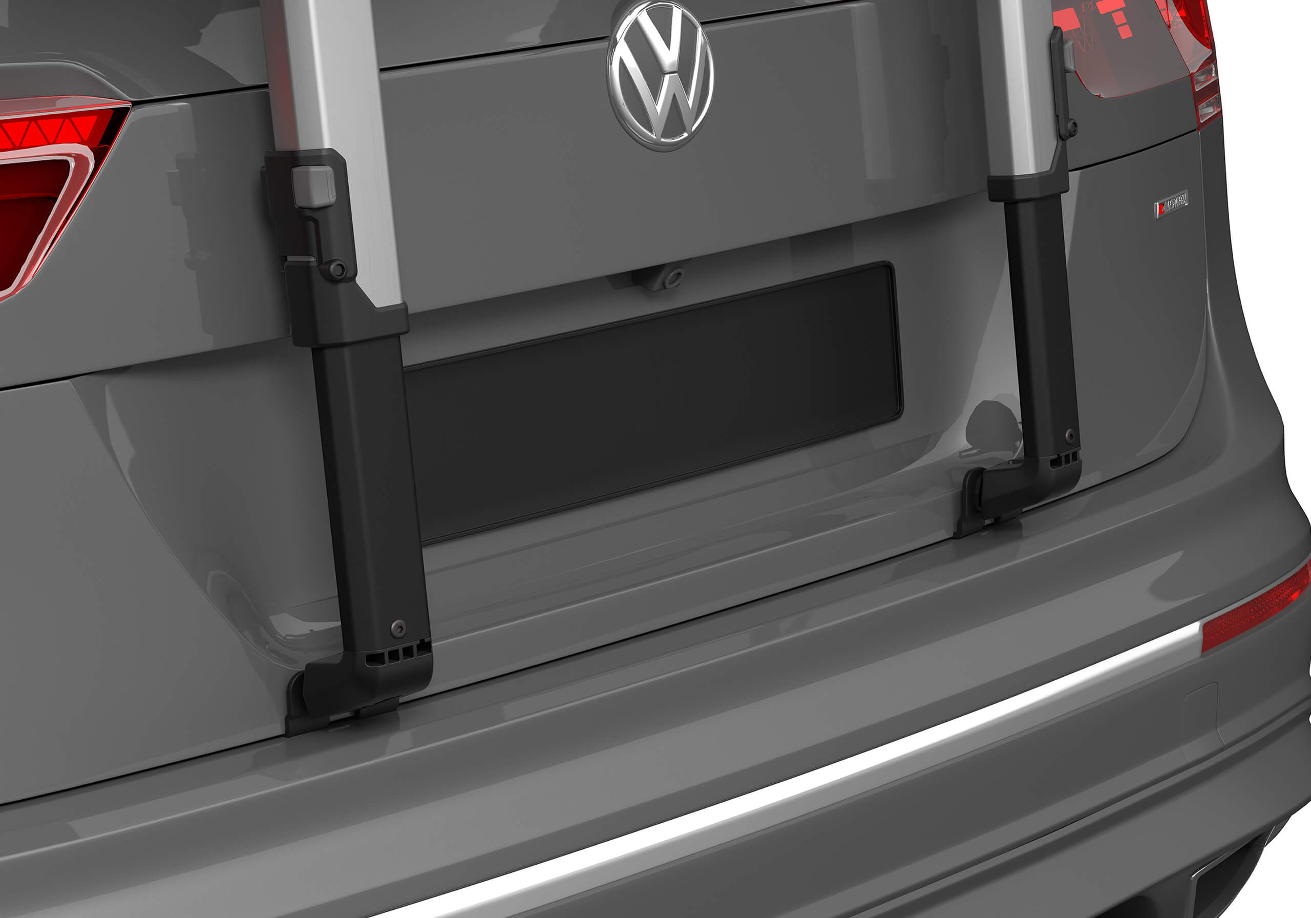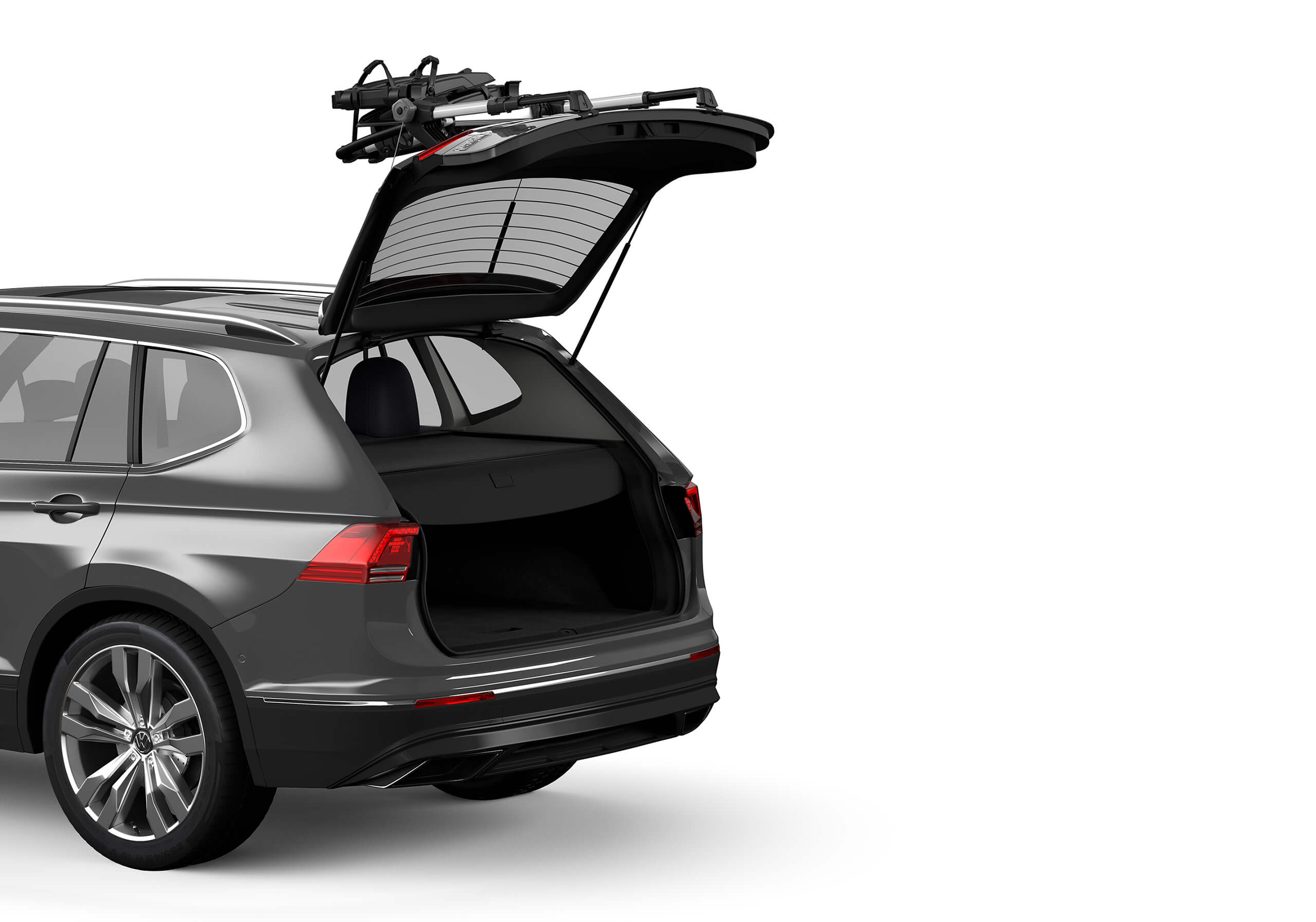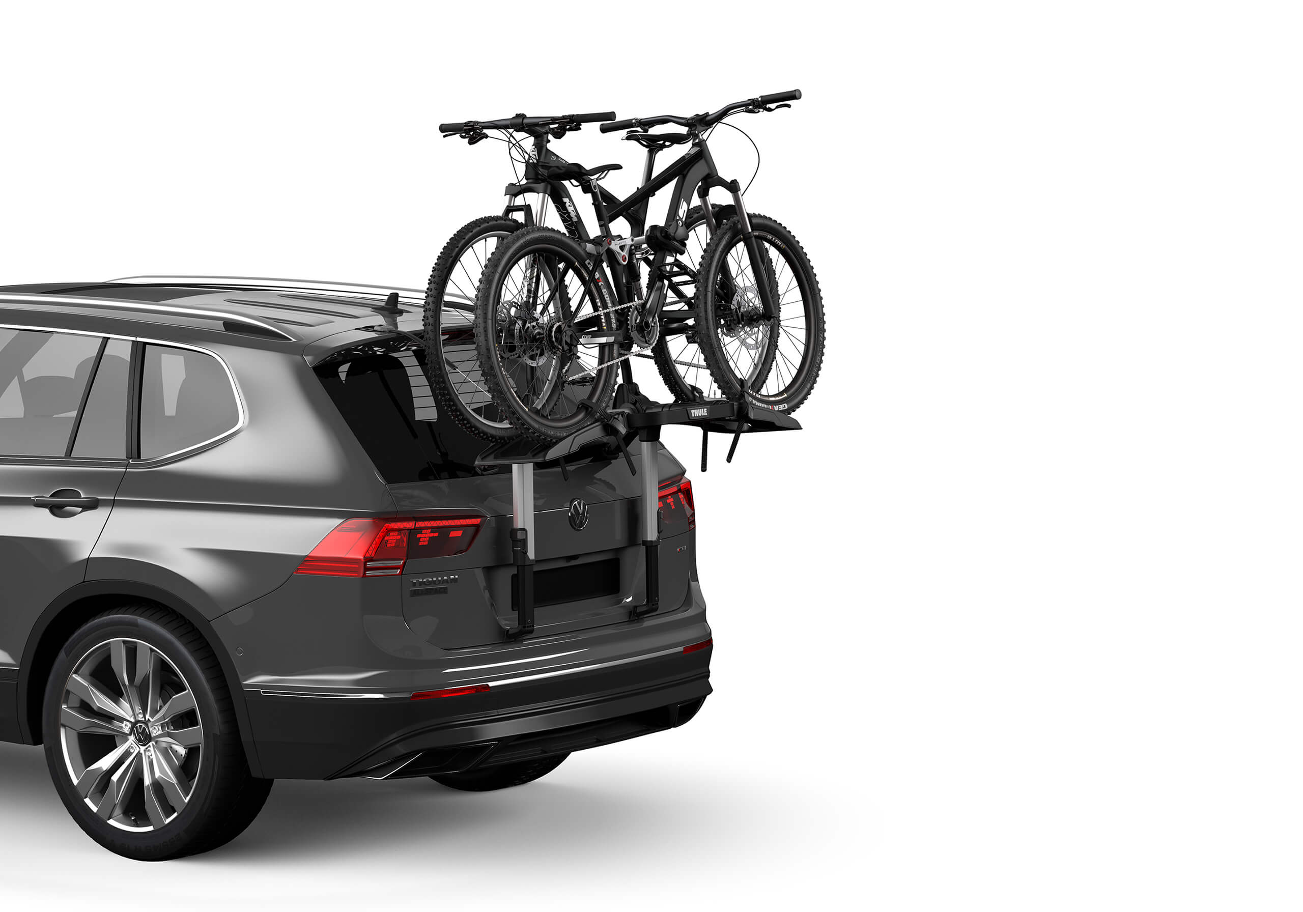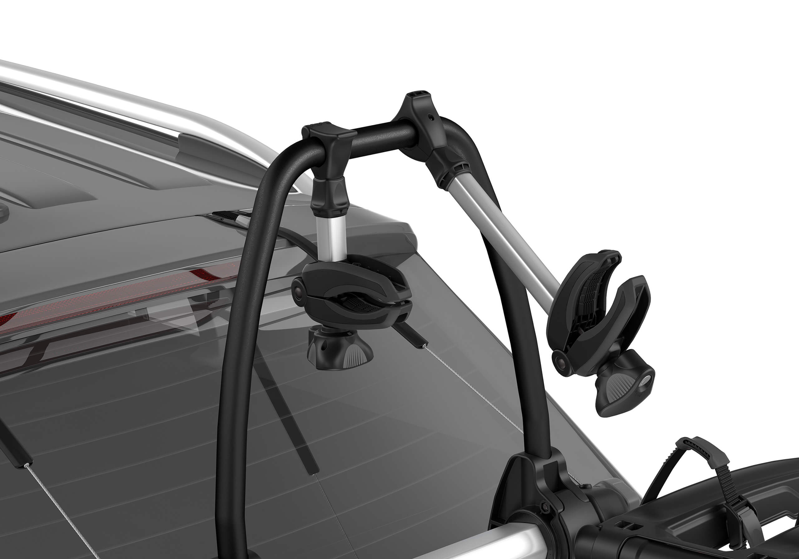 Thule’s two bike OutWay Platform attaches securely to the back of your car using rubber coated hooks with steel cables. 'AcuTight' locking knobs are used to (1) ensure the rack is fitted securely to the car and (2) to ensure the bikes are held securely on the rack.