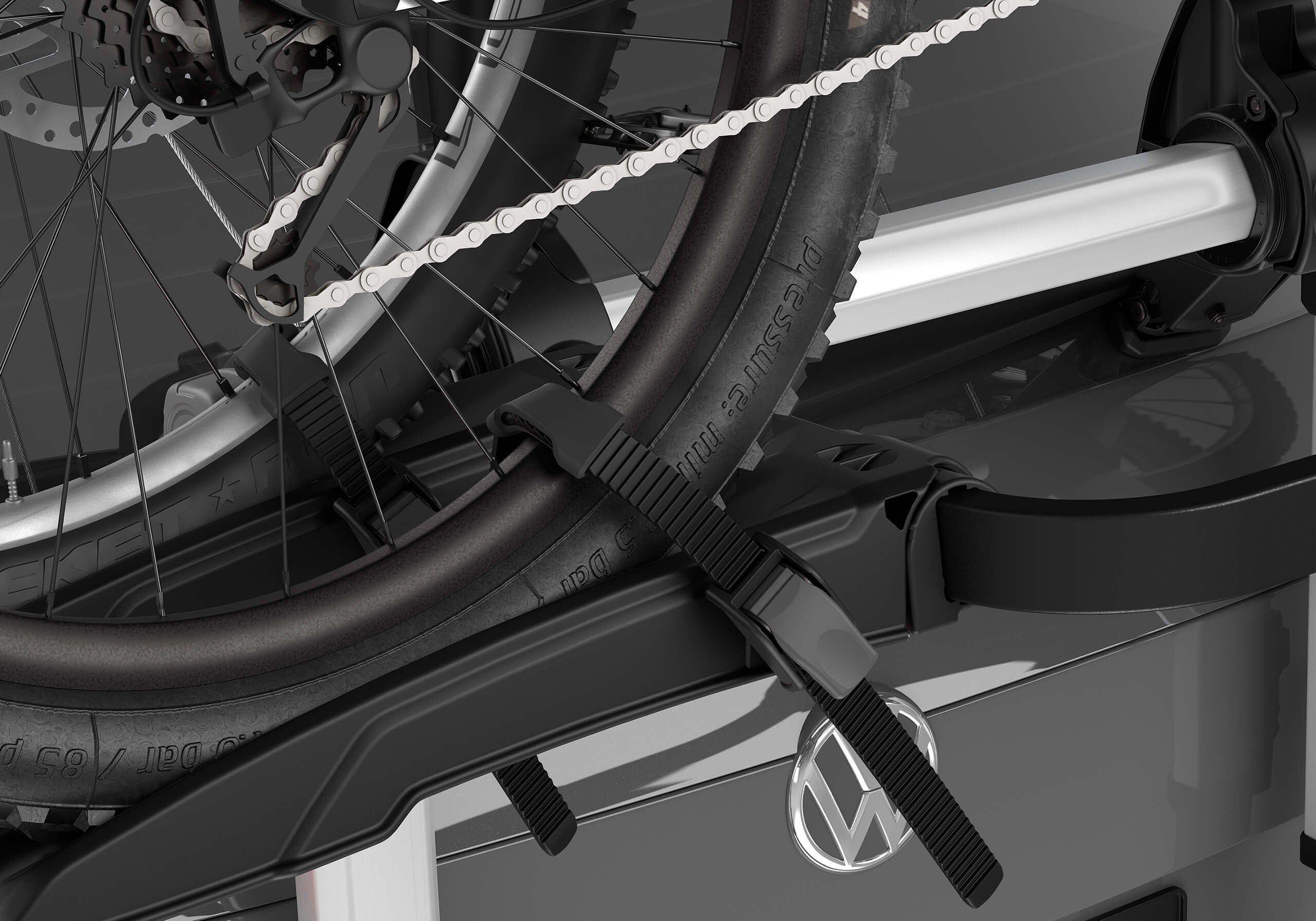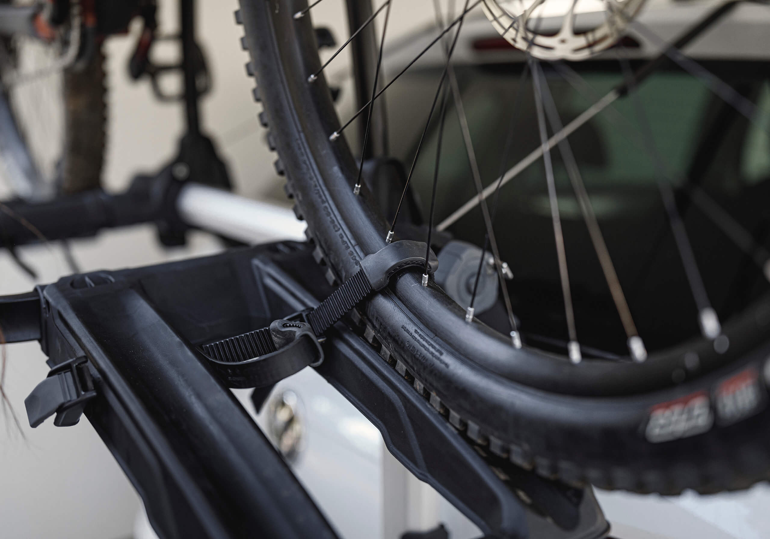The bikes secure with lockable, detachable bike arms. These bike arms also use Thule's 'AcuTight' locking knobs to ensure a secure fit.