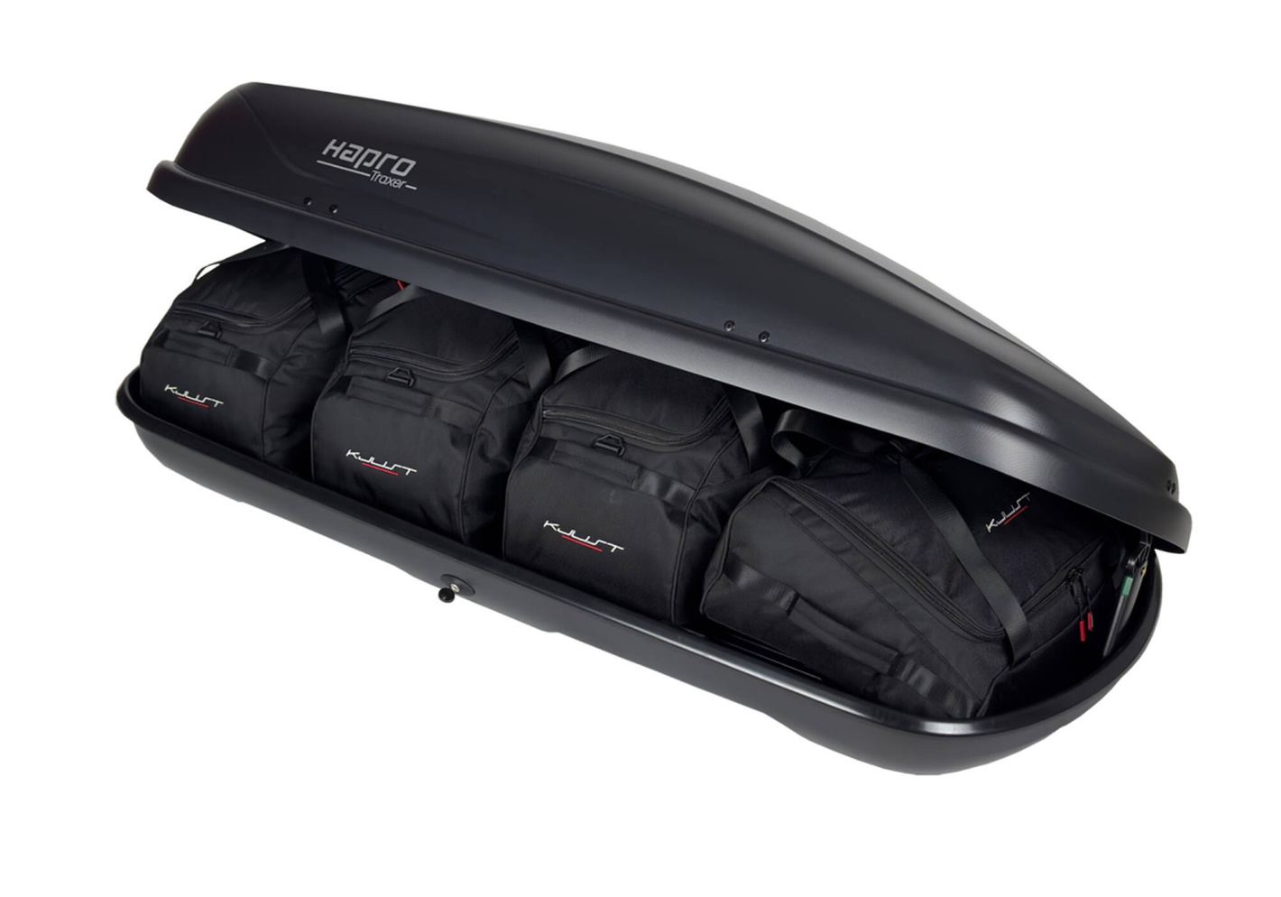 This superb box and bars package deal provides everything you need, including locking roof bars. All you need to do is to click on "Add to basket and choose bars" to place your order; we'll then show you which roof bars are available. You'll pay more for aluminium than for steel, and you'll pay more for Atera, Thule, or Yakima than you'll pay for CRUZ. The savings on buying the components individually are huge and, if the bars you choose don't come with locks as standard, we'll include them for free, so often the savings are even bigger than advertised. We're very confident that you won't find such good value anywhere else! Hapro's Traxer boxes have a contemporary and individual design which combines strength with practicality - the design brief was that they should be "robust, attractive, secure, spacious". They've been thoroughly tested and approved by the German TÜV, including "City Crash testing". General features: