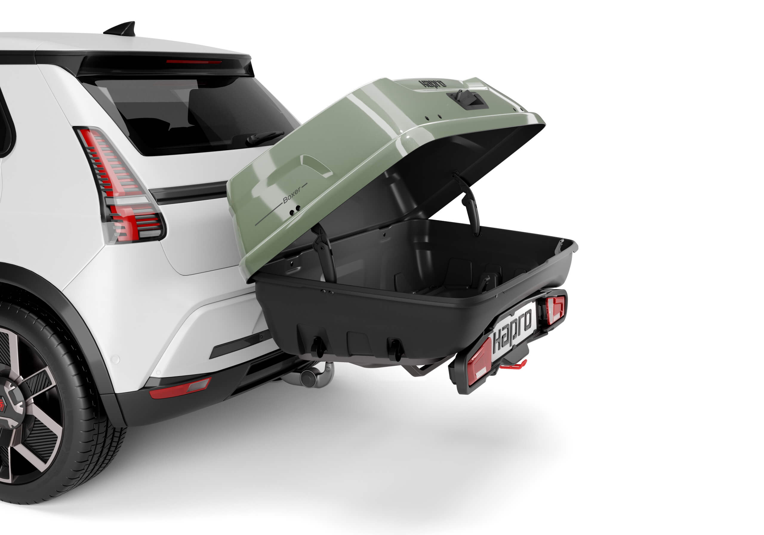 The Hapro Boxer is a stylish, robust and very thoughtfully designed rear cargo box, cleverly integrated with its tilting platform.