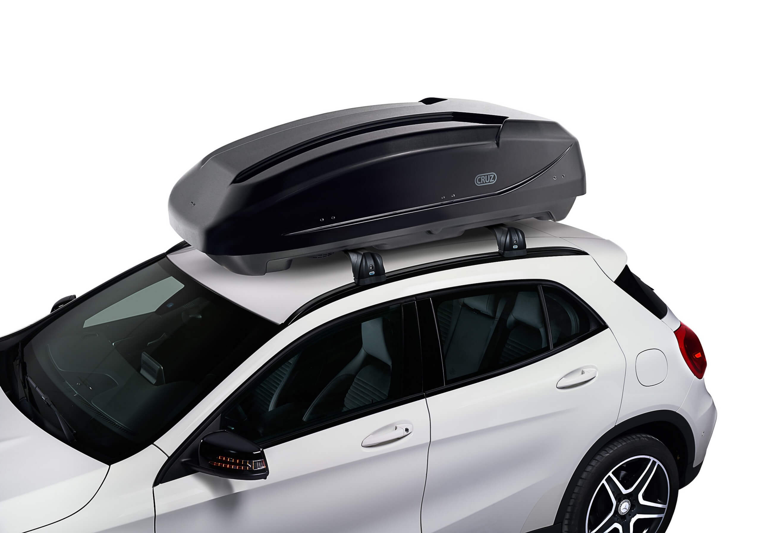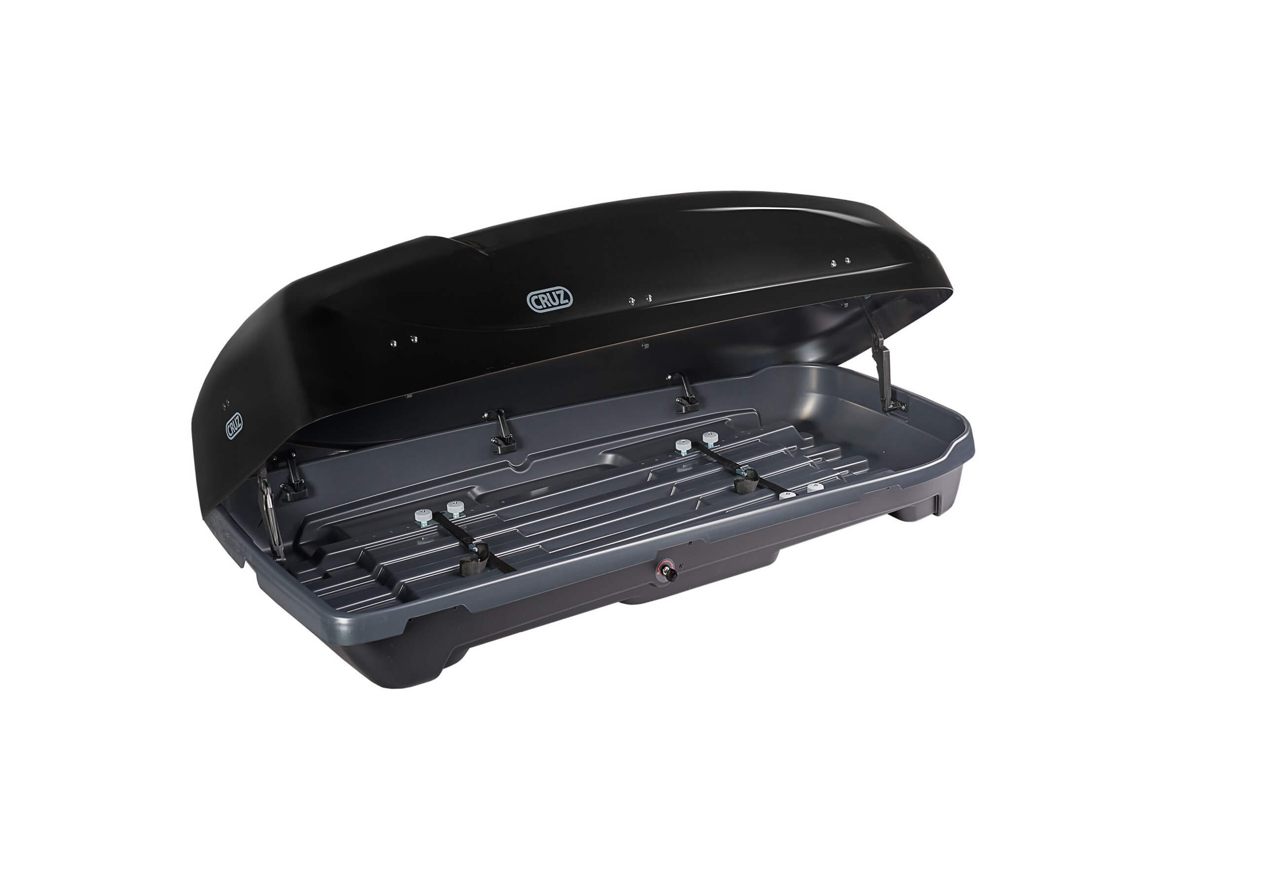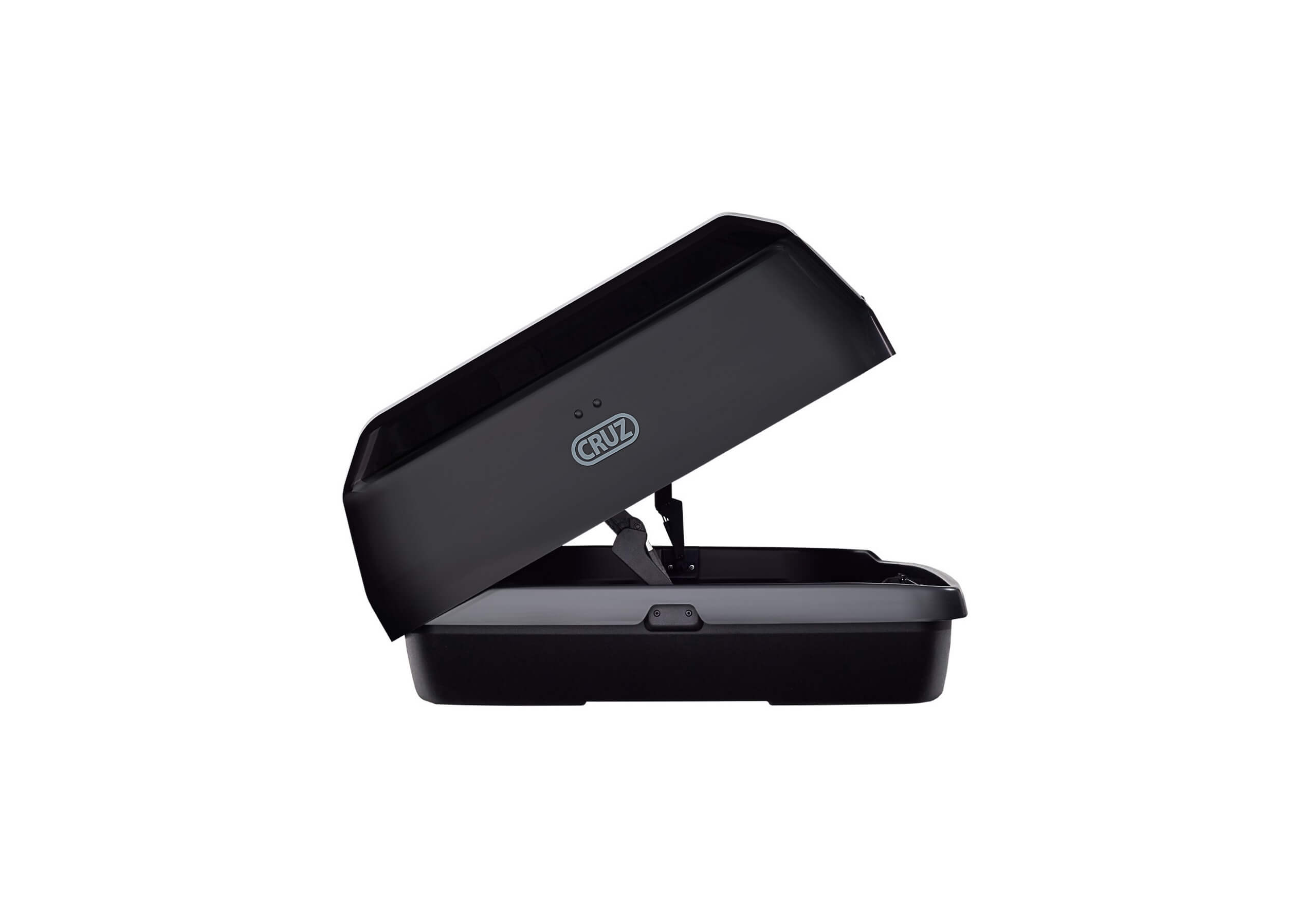 This superb box and bars package deal provides everything you need, including locking roof bars. All you need to do is to click on "Add to basket and choose bars" to place your order; we'll then show you which roof bars are available. You'll pay more for Atera, Thule, or Yakima roof bars than you'll pay for CRUZ. The savings on buying the components individually are huge and, if the bars you choose don't come with locks as standard, we'll include them for free, so often the savings are even bigger than advertised. We're very confident that you won't find such good value anywhere else! A really good size box, it's ideal for family holiday gear. The lid is shaped to maximise the amount of luggage you'll fit in the box. At 90cm wide, you'll still have room for one bike if you are using aluminum T-track bars that are at least 120cm long. General features: