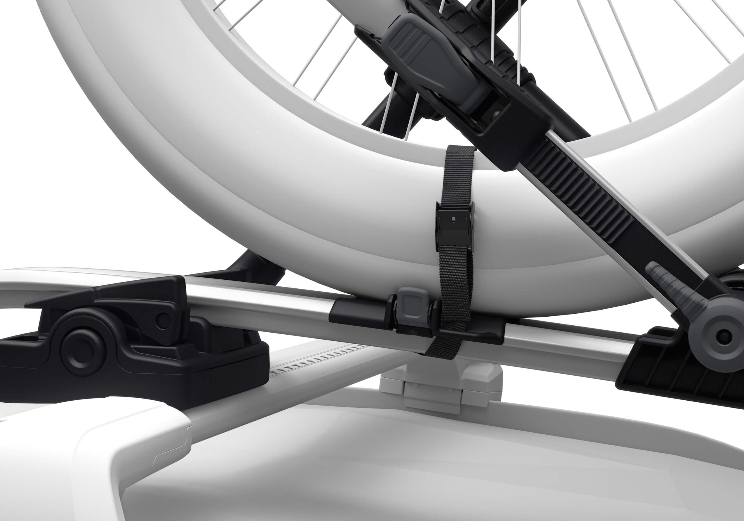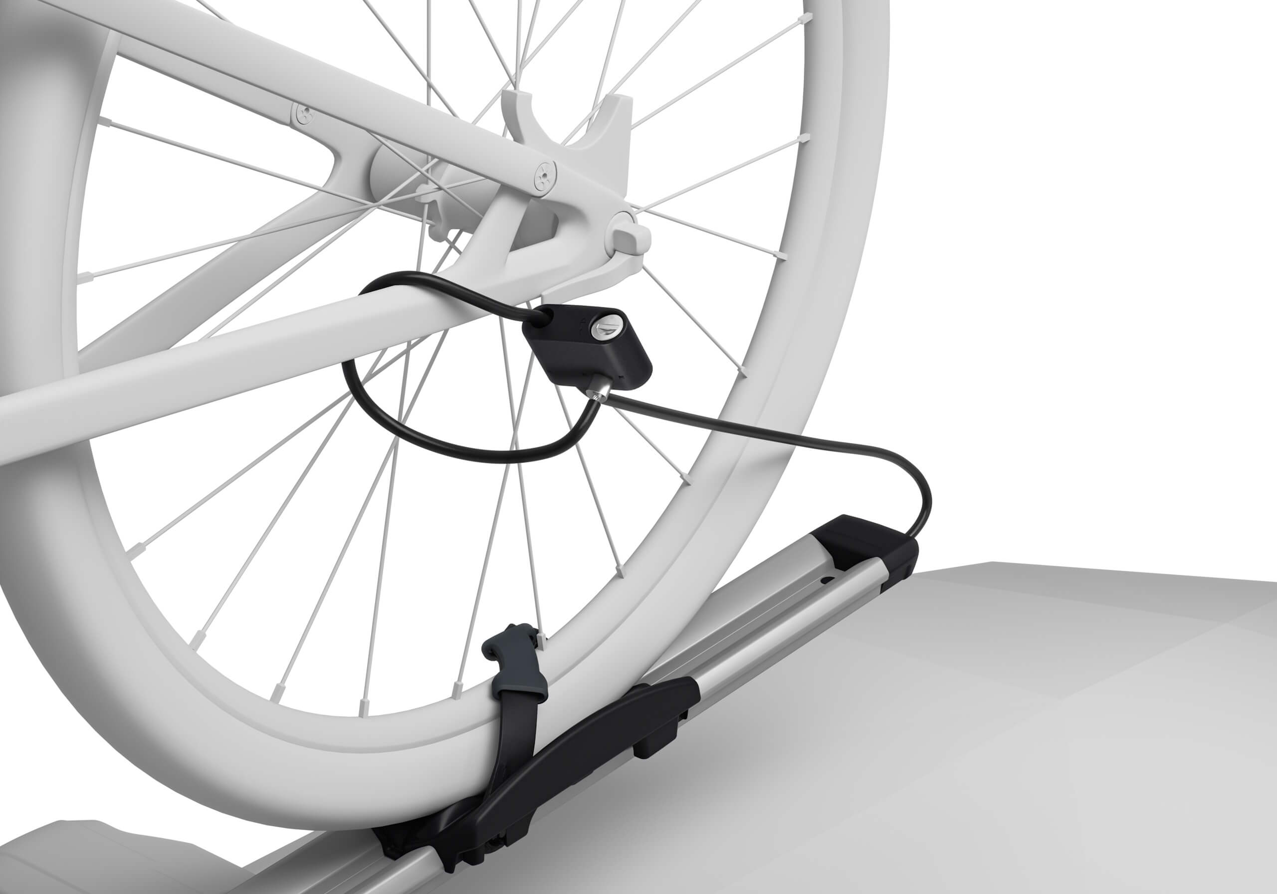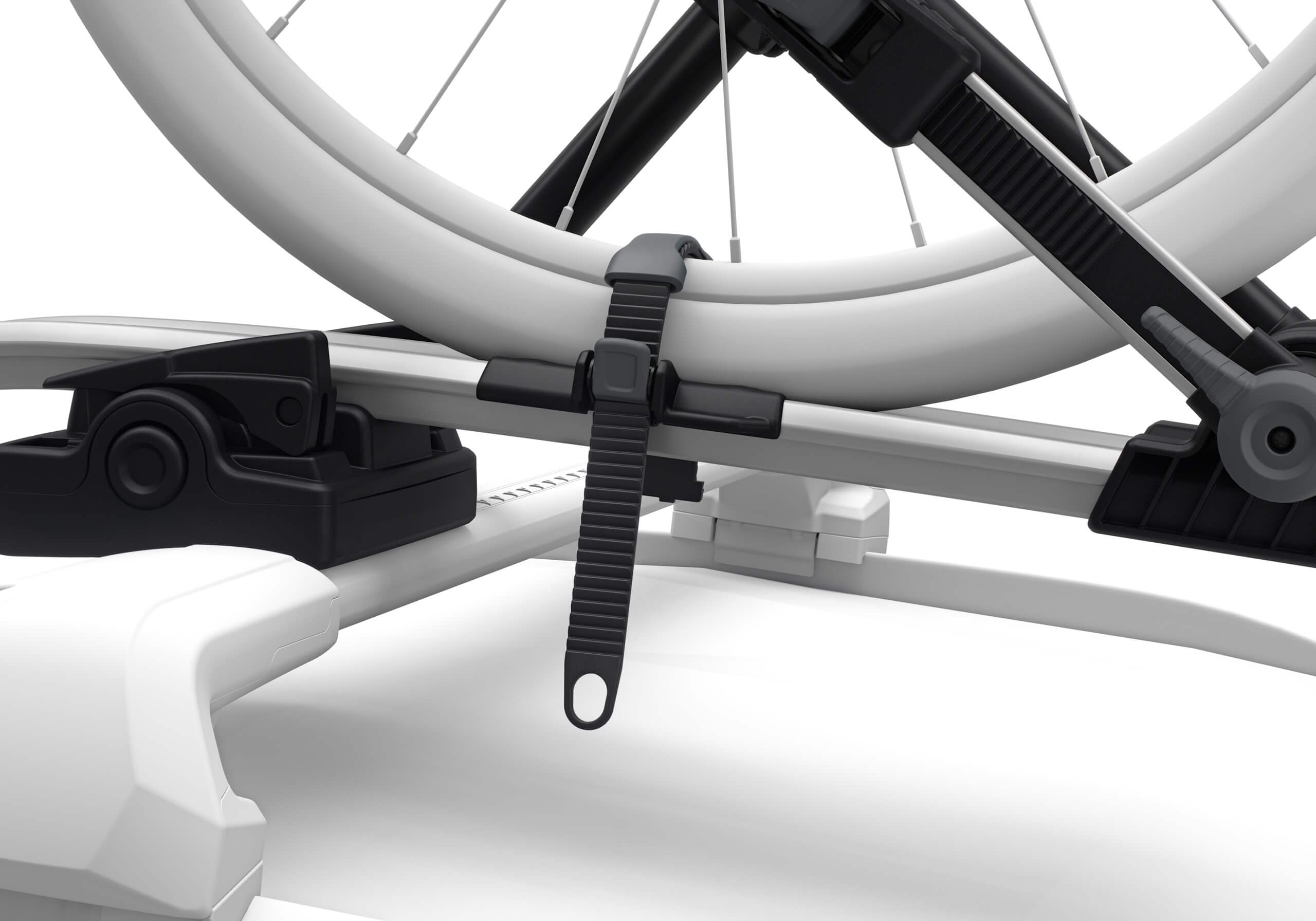 Thule’s UpRide 599 offers great protection for the bike frame and is also foolproof to load and secure. No part of the rack makes contact with the frame of your bike, making it ideal if you have a carbon or unusual shaped frame. It's versatile design will accommodate bikes from 20" to 29", wheelbases up to 1300mm and tyres up to 3" (or 5" with the optional fatbike adapter) and weighing up to 20kg. It's quick and easy to install - no tools are required and everything is done close to rooftop level. Set the front arm to your wheel size then lift your bike onto the rack and secure the second arm. The rear wheel is then secured with a ratchet strap. You can use the integrated locking cable to lock you bike in the rack. Other features: