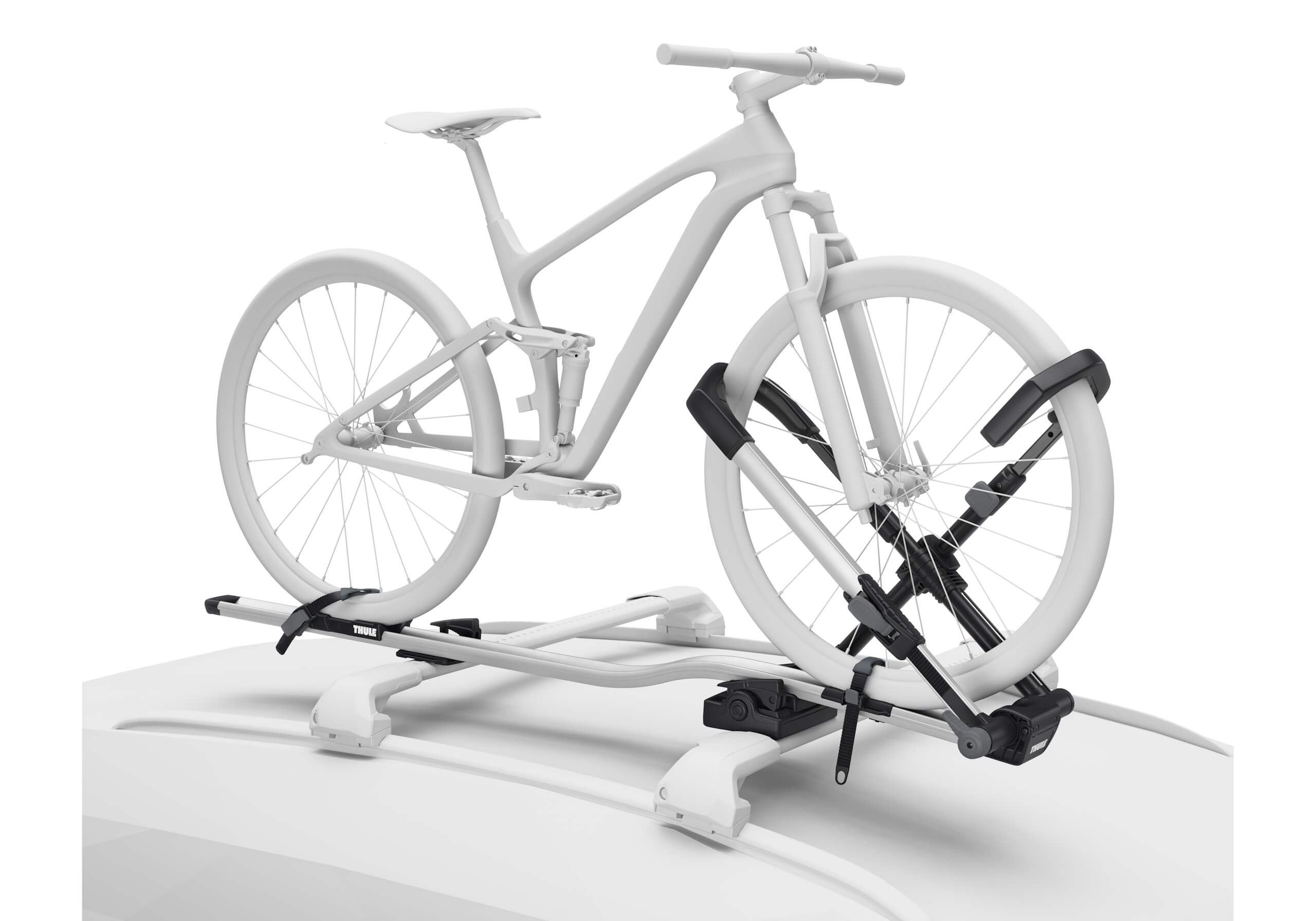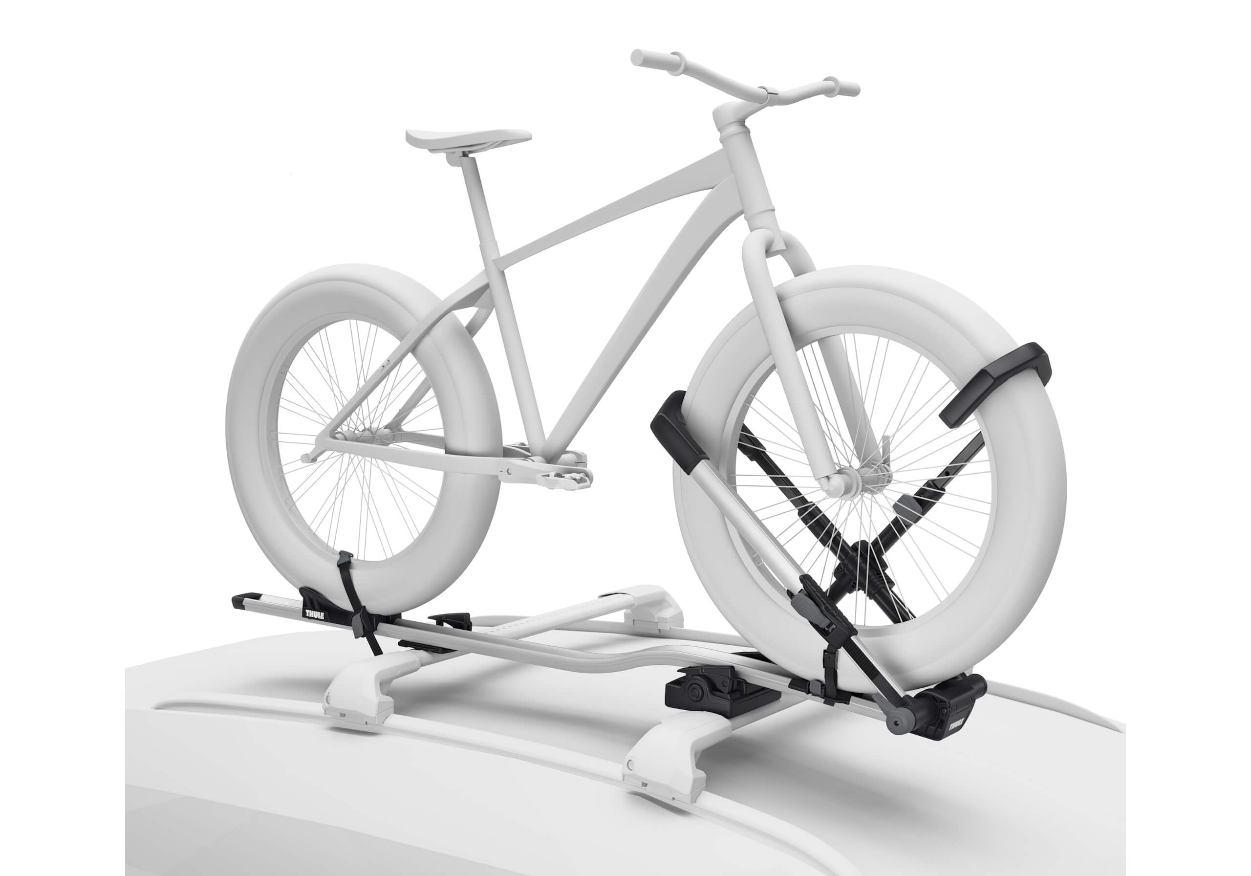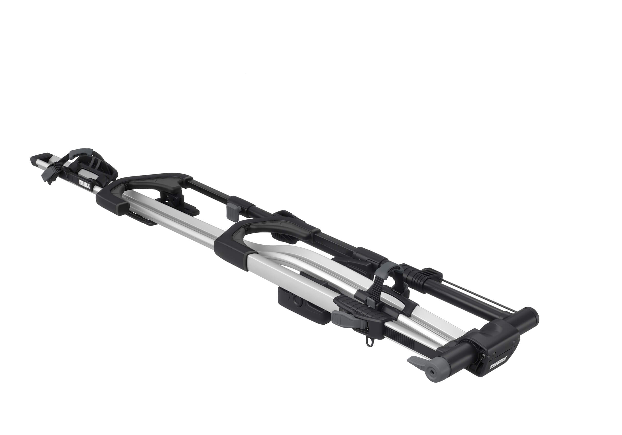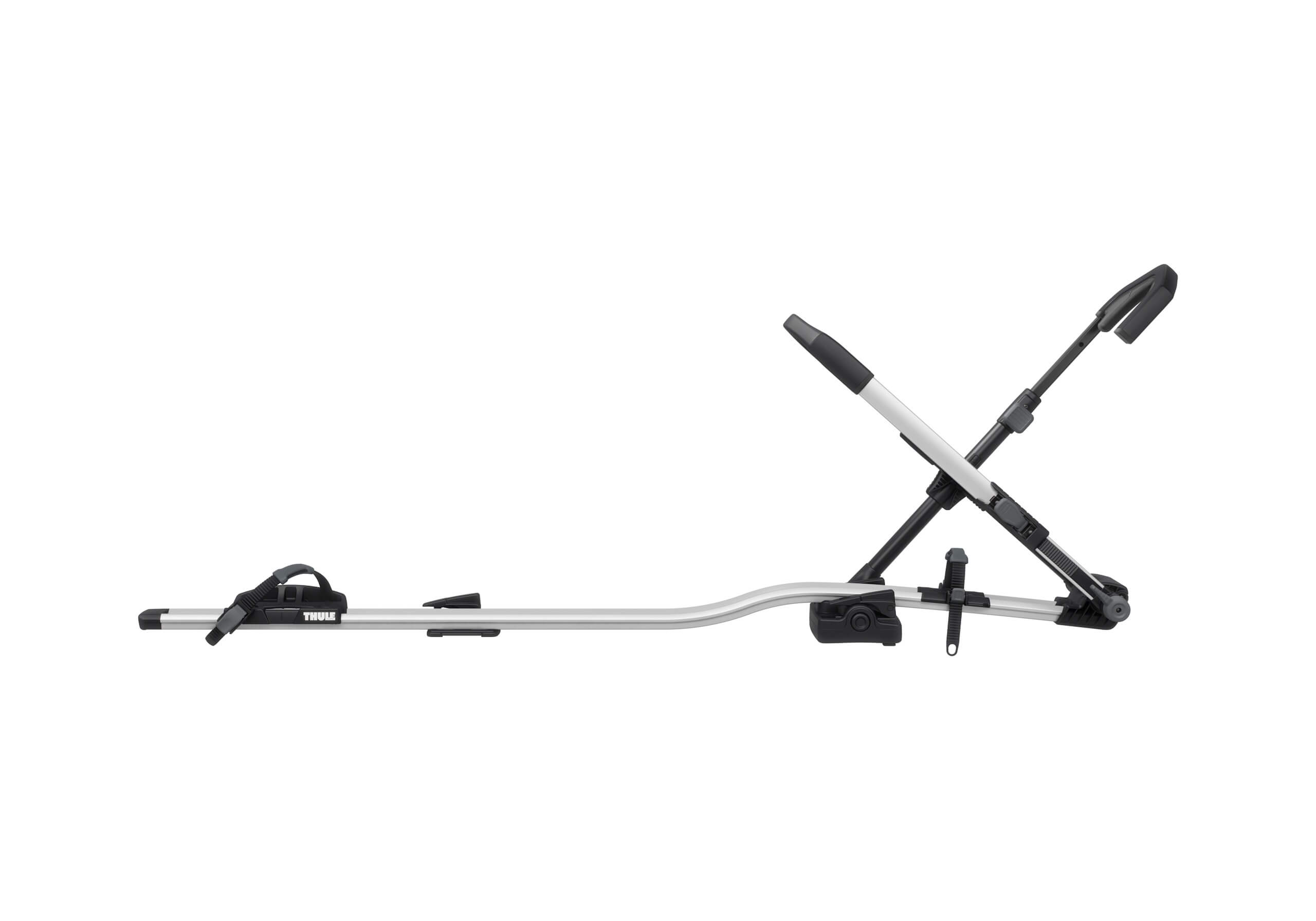 Not suitable for bikes with mudguards fitted very close to the tyres. Roof bar compatibilitySteel (22mm x 32mm) barsYes with adapter TU8898 Aero barsYes. includes fittings for all the T-track aluminium bars we sell (adapters required for some OEM bars) Bike compatibilityMaximum number of bikes1 Maximum bike weight20kg Fits tyre widths up to3 inches (5 inches with adapter TU5991) Maximum wheelbase1300mm Maximum wheel size29 inches. Minimum wheel size: 20" General informationBrandThule Guarantee2 years. (plus an extra 3 years if you register the product with Thule) Length1630mm Width3150mm Depth105mm Weight7.7kg ColourSilver SecurityBar to carrier lockYes Carrier to bike lockYes Specification PDFs