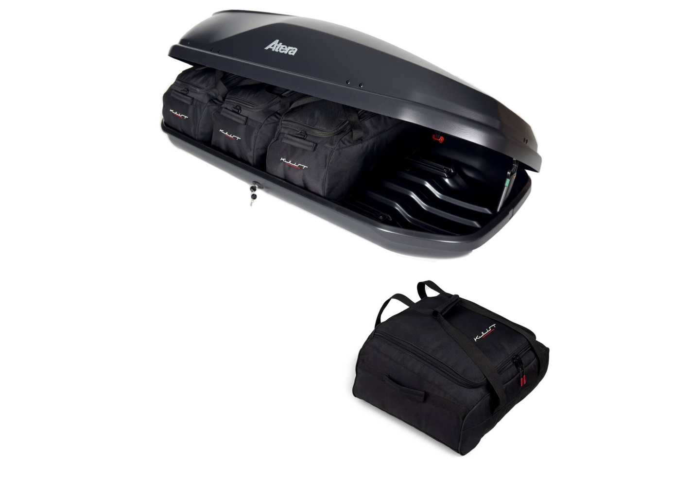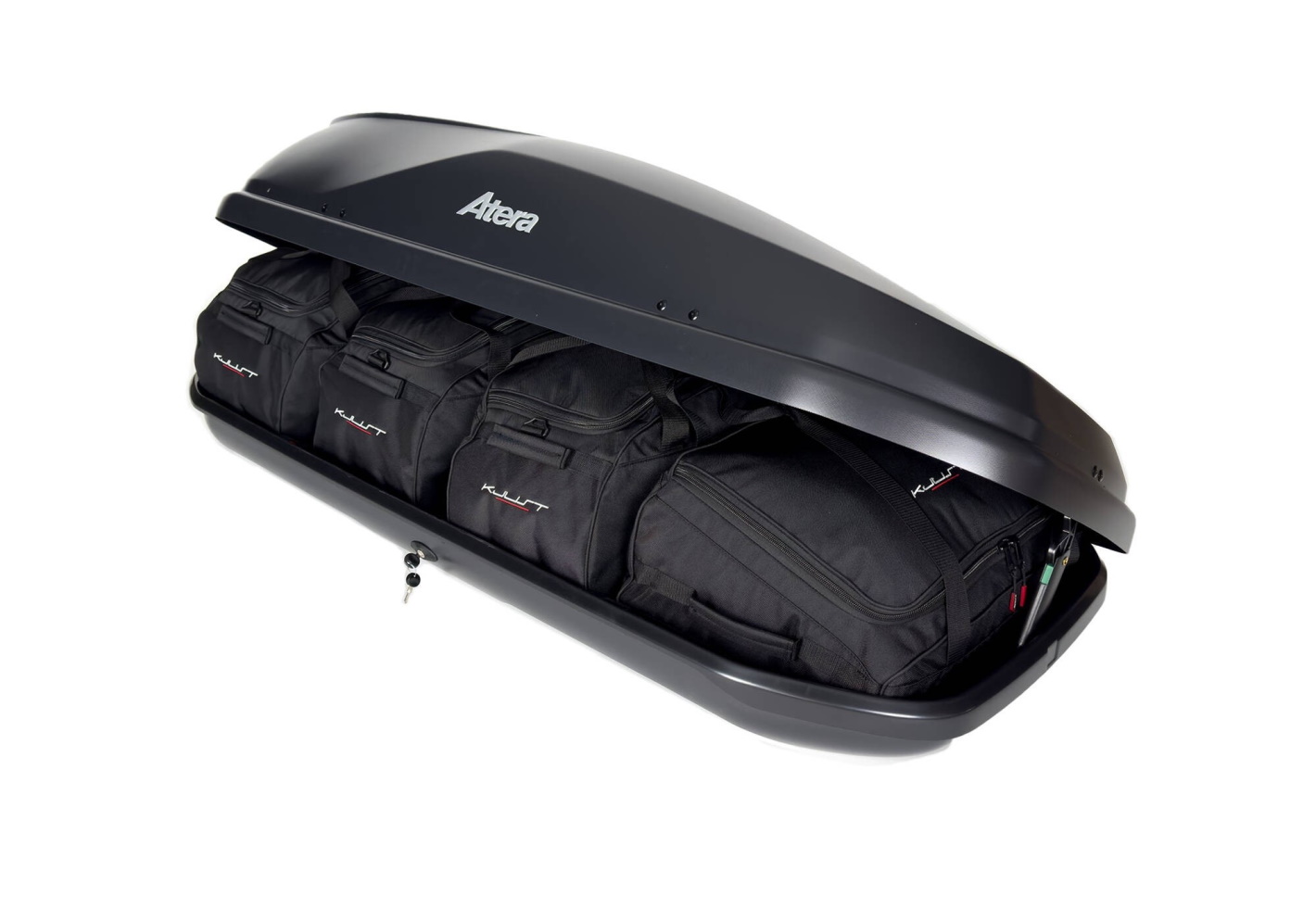 This superb box and bars package deal provides everything you need, including locking roof bars. All you need to do is to click on "Add to basket and choose bars" to place your order; we'll then show you which roof bars are available. You'll pay more for aluminium than for steel, and you'll pay more for Atera, Thule, or Yakima than you'll pay for CRUZ. The savings on buying the components individually are huge and, if the bars you choose don't come with locks as standard, we'll include them for free, so often the savings are even bigger than advertised. We're very confident that you won't find such good value anywhere else! The Atera Casar is a top end roof box, with a purposeful, fine-looking lid design that maximises the internal space while still providing the rigidity and stability required. The roof box base includes recesses which bring the whole box closer to the car roof; these recesses are long enough to accommodate widely-spaced roof bars or prominent rear tailgate spoilers; in other words, we expect the Casar to be able to be fitted to all cars. It opens on the right-hand side, and uses Hapro's Master-Fit claw-style box to bar fittings - these are very are easy to use, fit to all the bars we sell except for Thule ProBars (not available in package deals), and don't take up much room in the box. Other features: